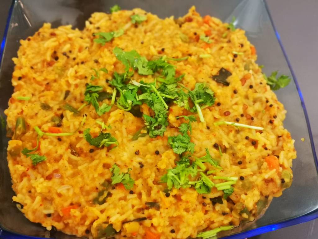 Also known as Bisi Bele Huli Anna, it is a hot lentil rice which is tasty, delicious and a wholesome complete meal with vegetables. It is one of the most popular dishes of Karnataka and my favourite too…..