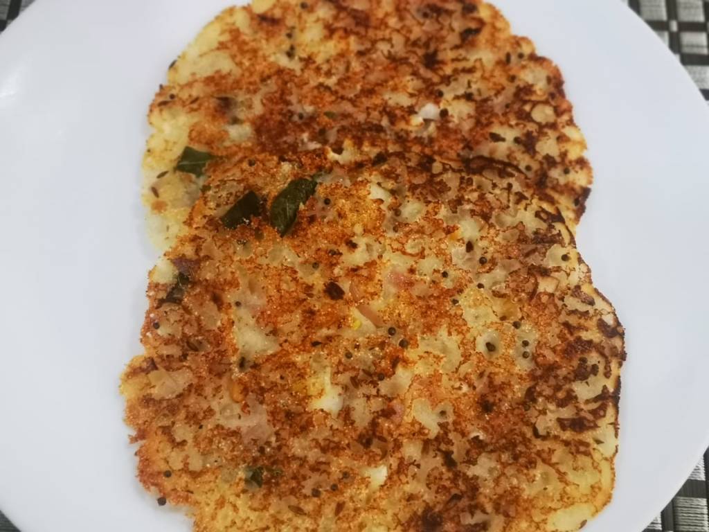 Heat a tava or a non stick pan and pour it like a uthapam. Add 1 tsp oil and cook on slow fire, taking care not to burn the sides of the uthapam. When done, take off the pan and serve alongwith chutney or sambar.