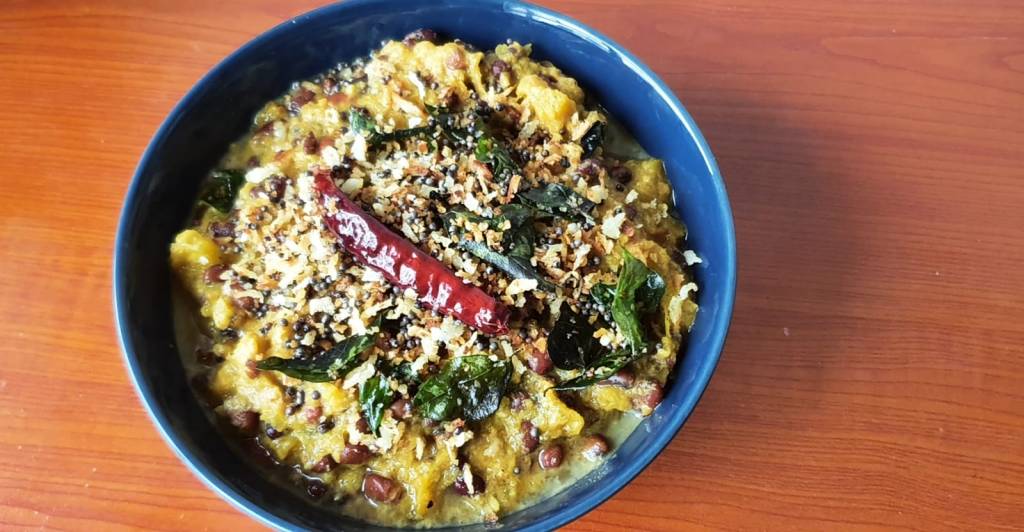 A traditional dish from the Kerala cuisine which is a part of the Onam feast. The roasted coconut and the coconut oil enhances the taste of this dish. You could also make this with Chena/Karnakizhangu (Elephant’s foot) or Kaya/Vazhakkai (raw banana).