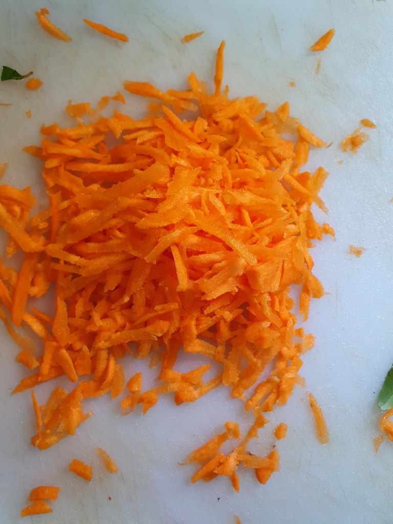 Heat a pan. Add oil. When it becomes hot, add mustard, jeera, chopped onions, curry leaves and finely chopped green chillies. Add the grated carrot, turmeric powder, peas (optional) and the boiled potato and saute. Next goes in the poha/rice flakes and salt. Reduce the flame to low. Mix the poha well and sprinkle a little water and close the lid. Let it cook for 3 -4 minutes.