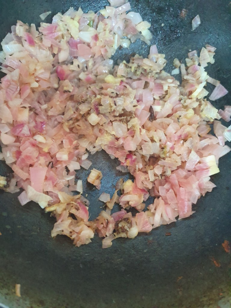 Heat 2 tbsp of oil in a pan. When it becomes hot, add shah jeera, cardamoms and cloves. Stir fry for a minute.