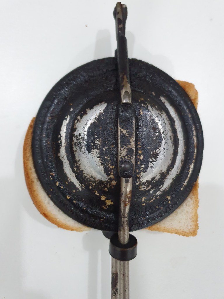 Take 2 breadslices. On one of the slices, apply a little butter. Top it with some cooked minced meat and close it with the other slice. Grease the sandwich maker and place the sandwich on it. You may use omelette or a filling of cheese instead of the minced meat.