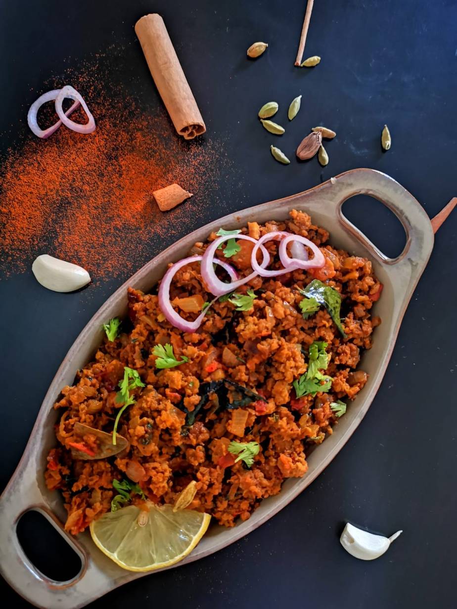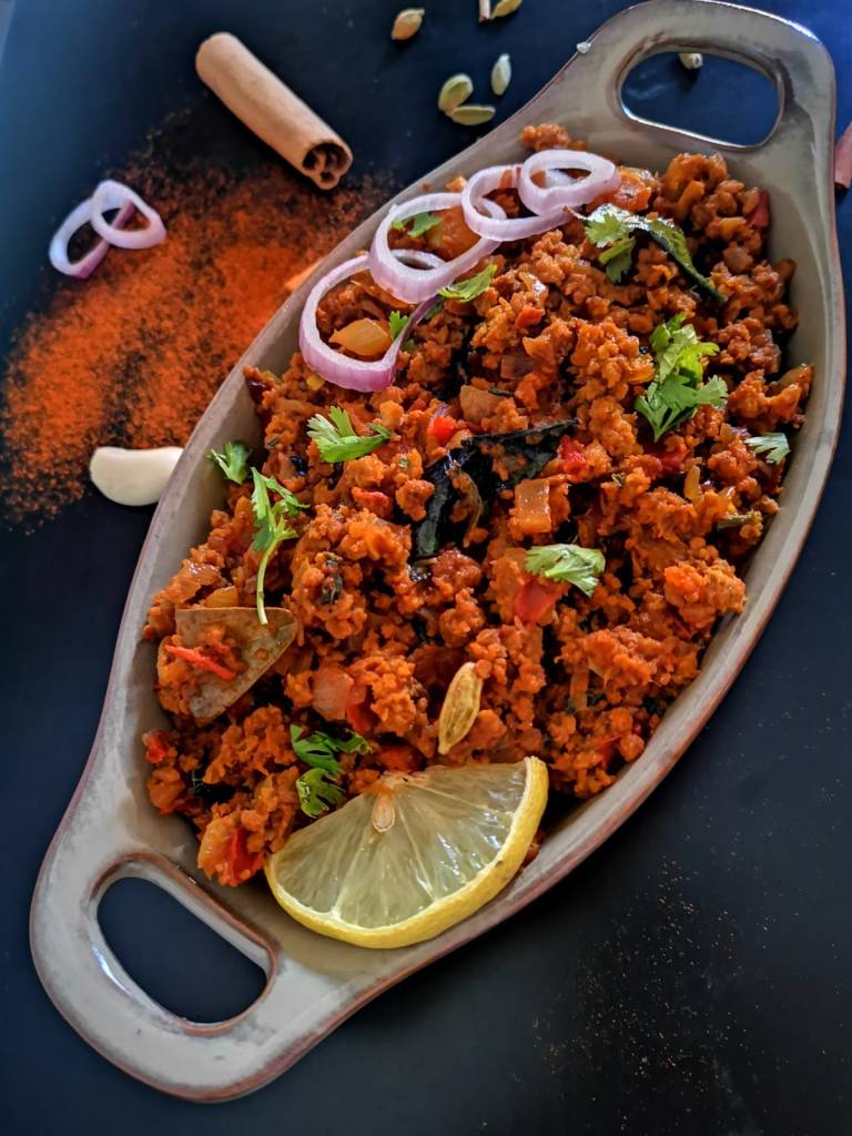 A flavourful combination of onions, whole spices, tomatoes and Indian garam masala powder with minced meat. You can substitute the minced meat with the meat of lamb, goat, chicken, buffalo or pork. It can be served with chapathis, rice, parathas and as minced meat sandwiches.