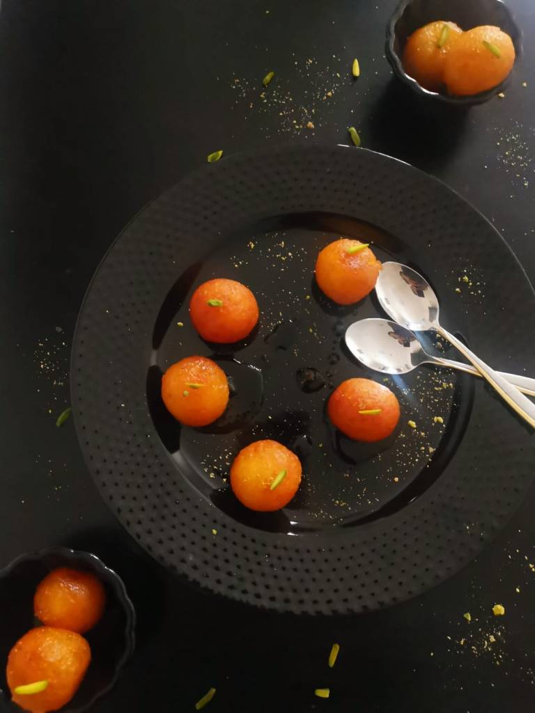 Gulab jamuns made from home made khoa are my mom’s speciality. She makes amazing soft gulab jamuns made from milk solids which is made by boiling the milk for a long time and then, condensing the full fat milk.