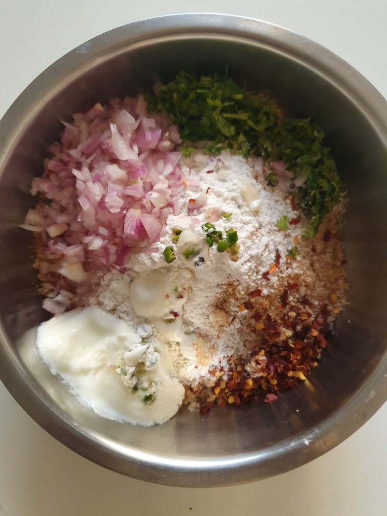 Clean the chicken, wash it well and marinate it with the yogurt, turmeric powder and 1/2 tsp salt and keep it aside for 30 minutes.